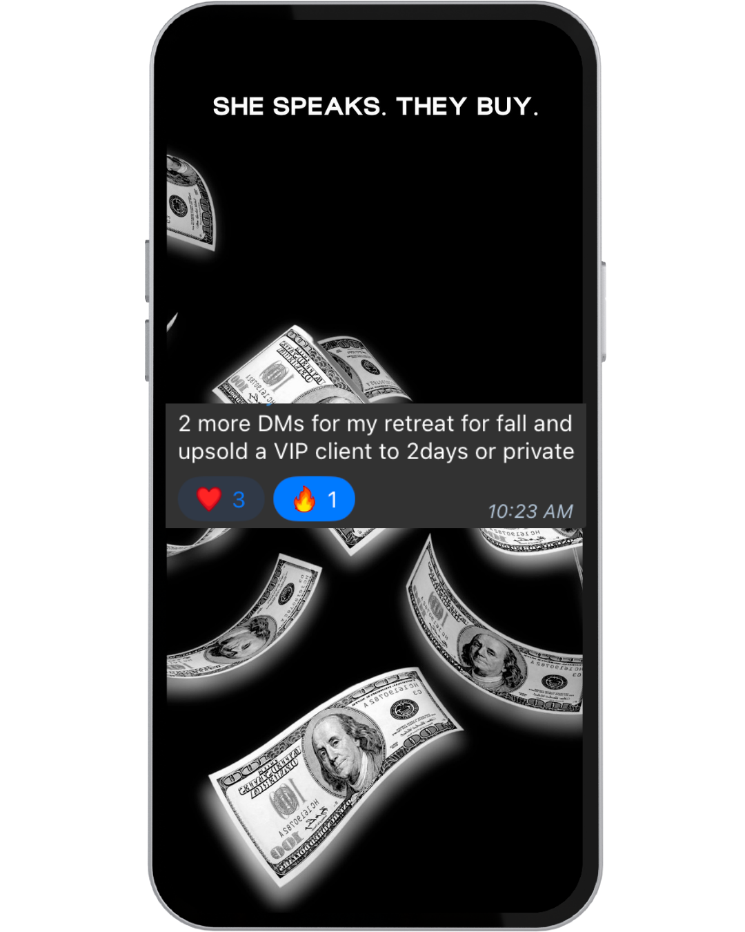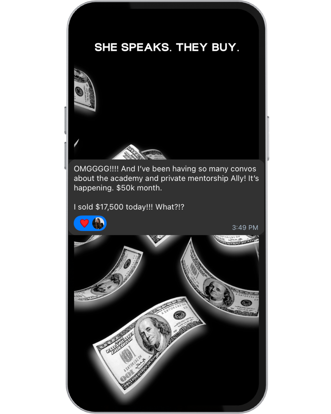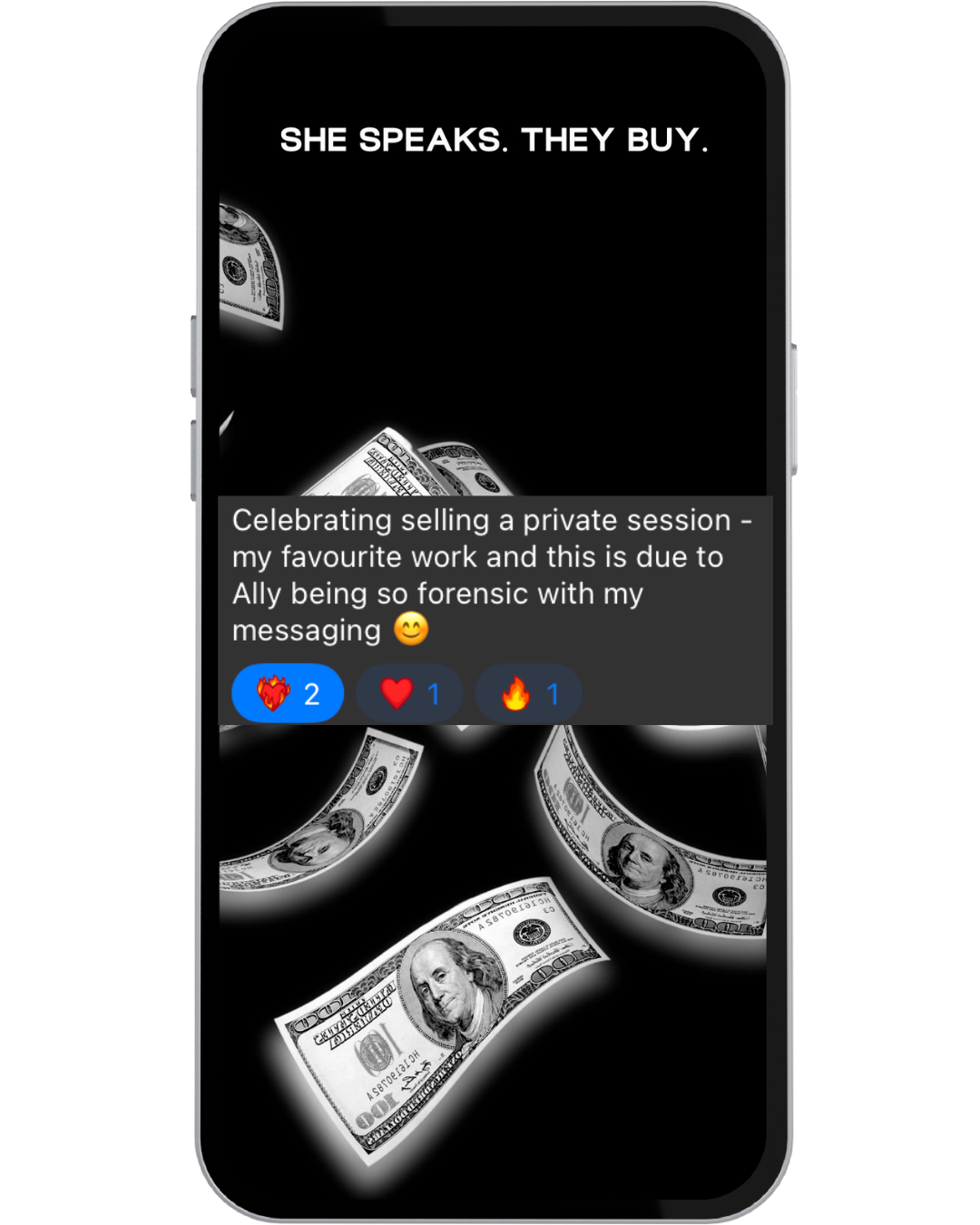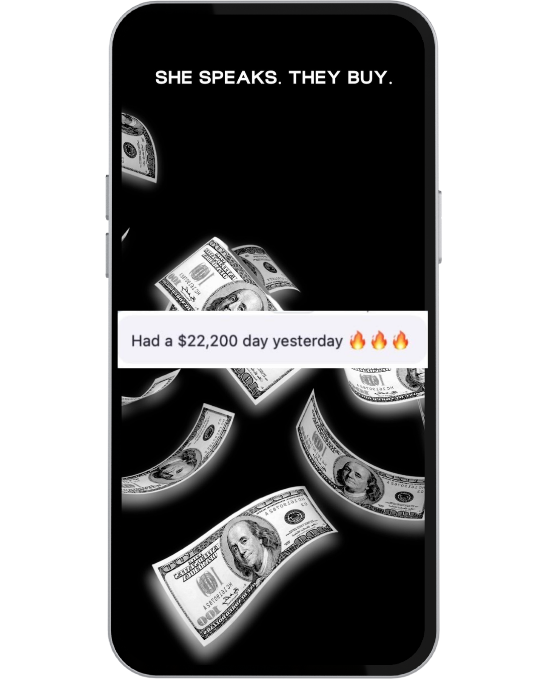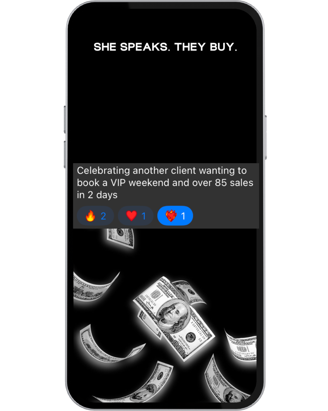 The frameworks inside She Speaks. They Buy. are responsible for $8M+ in high-ticket sales inside Wealthy Speaker — and for our clients.
