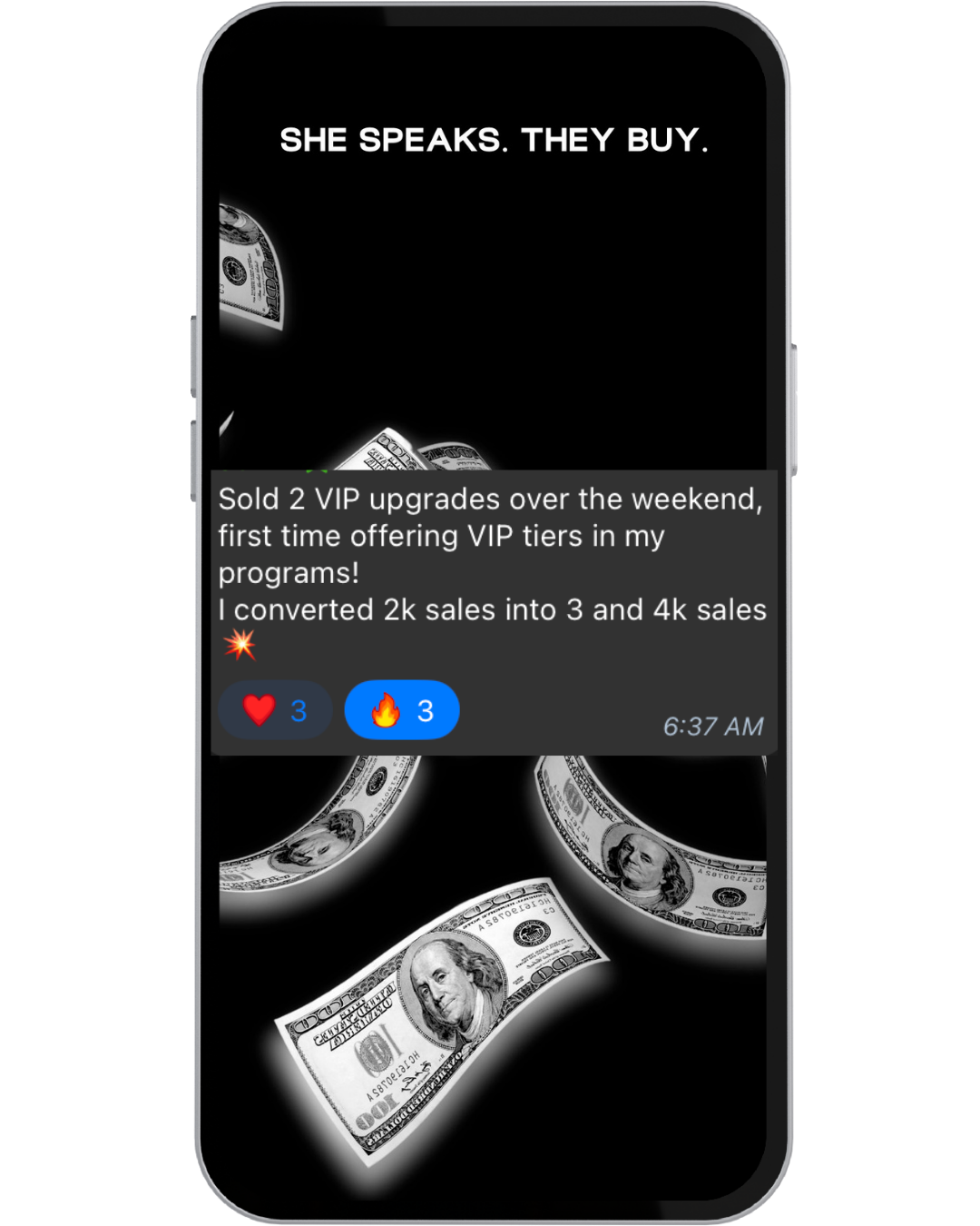 She Speaks. They Buy. Trainings + Live Calls