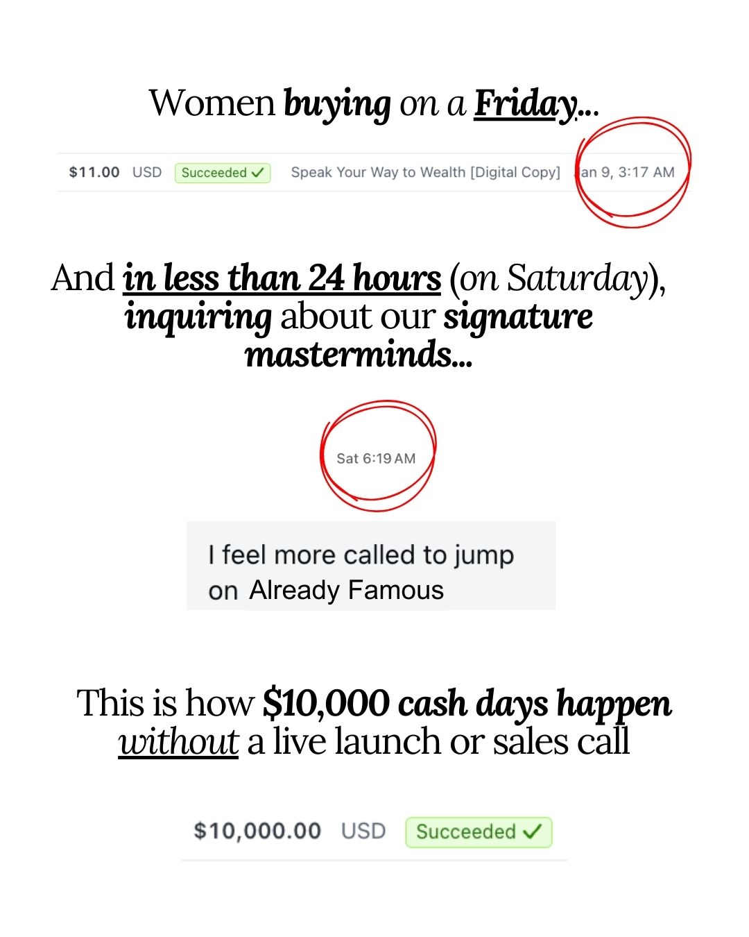 To move premium buyers into HELL YES momentum in as little as one post — and keep daily sales flowing long after you log off.