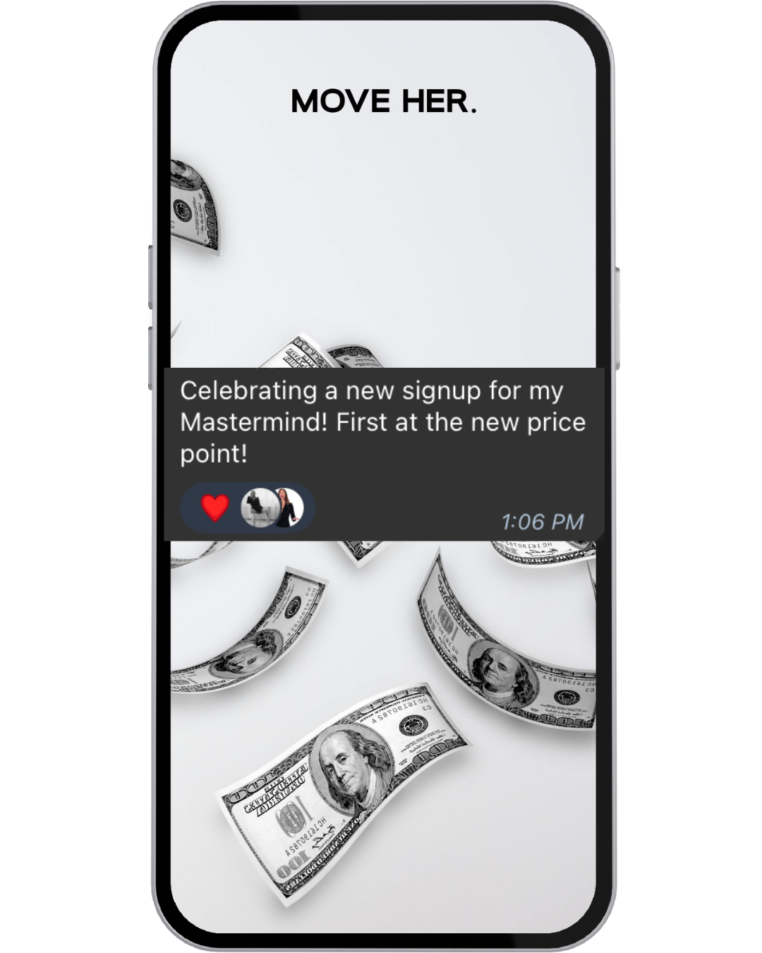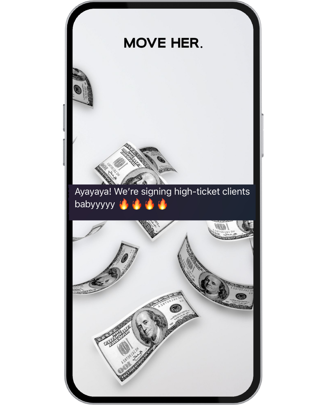 MOVE HER. is a premium buyer messaging training for female coaches, consultants, & service providers who sell (or are ready to sell) $5K–$50K offers —